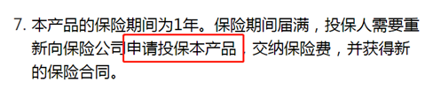这也就是说,在保障期限到期后投保人需要重新申请,被保人需要重新审核,加上如果身体健康状况不合格或者已经理赔过,可能无法续保。解释权在保险公司手上,要不要重新走健康告知也没写清楚,说拒保就拒保,受害的还是消费者。