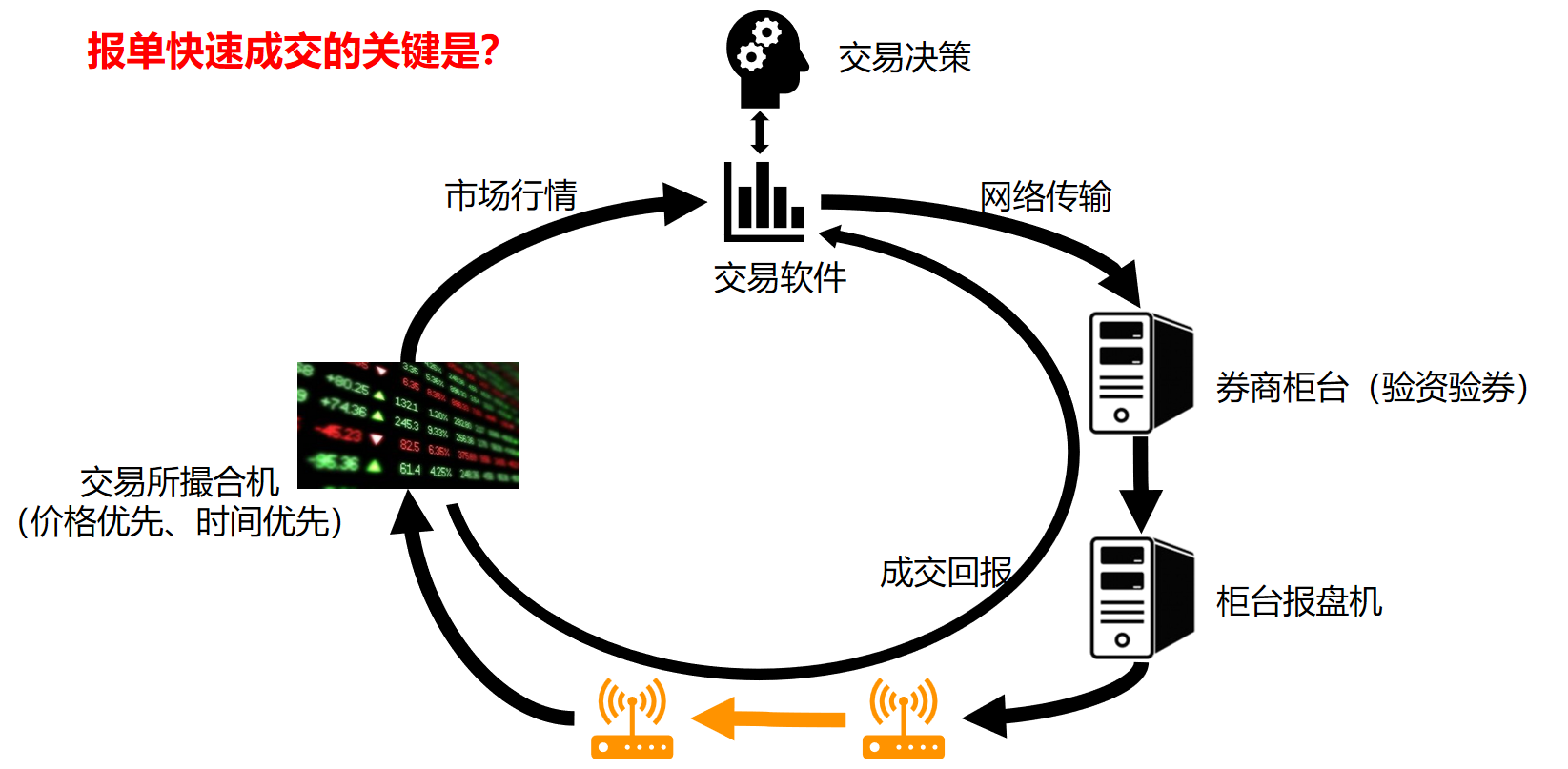 可以开通快速交易通道,快速通道就是VIP通道,就是券商在交易所有交易单元格,有独立交易网关,有了独立的交易网关,在交易所报单,排序靠前,也就是所谓的敲门单。那么它的速度也是可以达到纳S级别。
