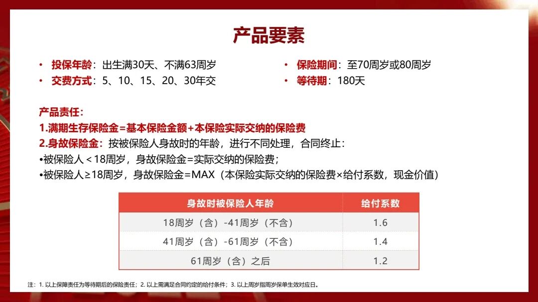 兼顾健康保障+养老规划。组合的终身重疾险负责健康保障,【康乐无忧】在客户70周岁/80周岁时奉上满期金,可以作为养老金!