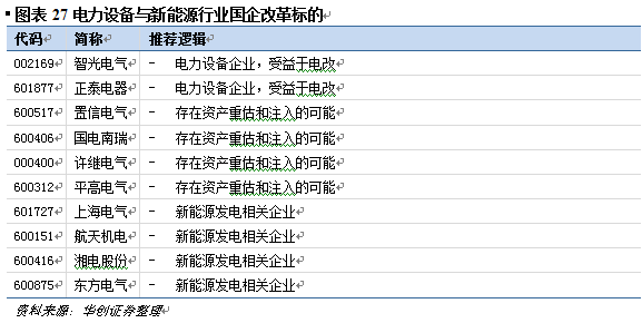 从资产负债率角度看,电力设备企业资产负债率平均在50%左右,相对合理,不存在迫切的融资需求。有些负债率超过80%的企业,可能存在因改善负债结构或是股权结构带来的负债证券化机会。从资产重组角度看,电力设备企业仍有较多盈利性高于上市公司的资产存在重估和注入的预期。2014年年初,国网工作会议提出继续加快国网下属南瑞集团、平高集团和许继集团的整体上市,比较有代表性的是南瑞继保注入国电南瑞。我们认为,在电改的大背景下,电力设备企业有望迎来一波资产重估和资产证券化的过程。从改革形势看,除了资产重估和整体上市外,还有一种形式是股权激励。通过增加员工及高管持股比例,或是引入私人企业参与,实现国有股份一定程度的私有化,激发企业活力。从电改角度看,电力设备企业最了解电力系统内的售电测,有望在电改的过程中最先受益。新能源方面,更多的是发电企业受益最大。比如水电、光伏、核电、风电企业及其设备厂商,方式类似电力设备。
