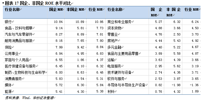 国资委退出“管人管事管资产”转向“管资本”,这一角色的变化将从监管层面提升国有企业经营效率。随着劳动、人事、分配制度三项改革的全面深化,以及国有企业薪酬激励机制的完善,此前经营不善的国有企业ROE望得到提高。