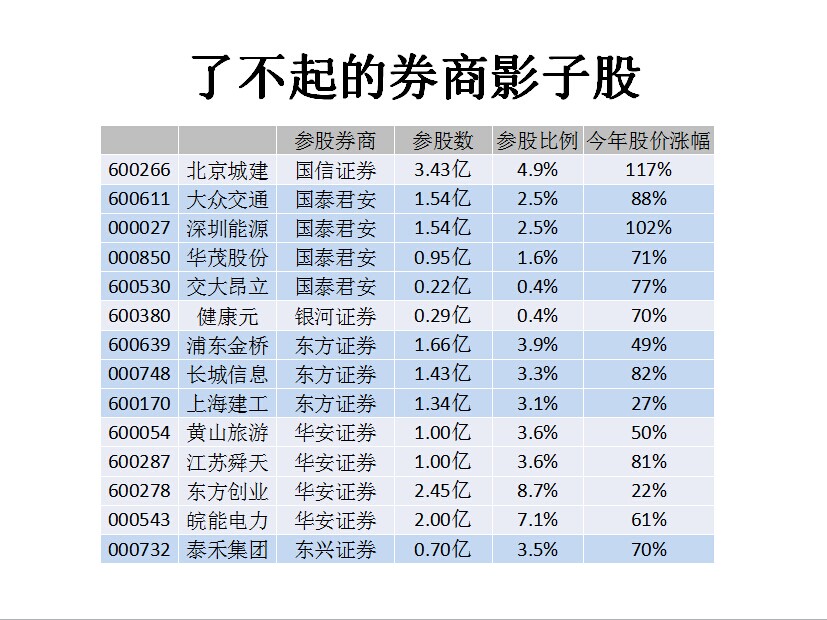 参股券商影子股大全