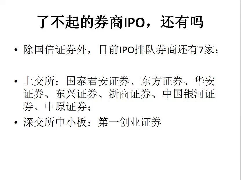 1、以上所列14家IPO券商,不包含借壳可能的券商。