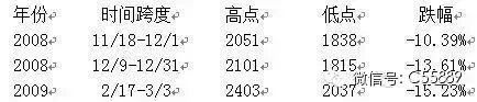 08年至09年的反弹行情,上证指数08年10月28日的1665点(准确是1664.93)到09年8月4日的3478点,上涨108.89%。期间发生的回调如下表格所示: