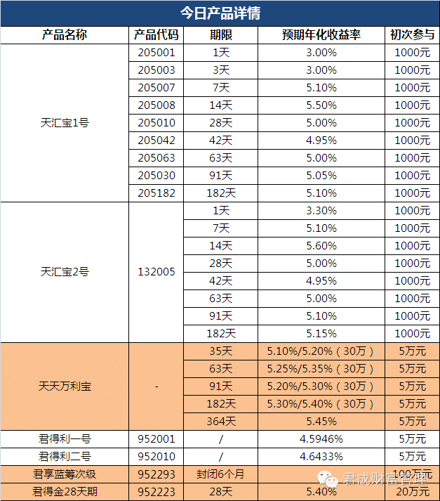 9.24日 国泰君安理财产品详情