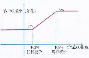 挂钩标的及方向 | 挂钩沪深300指数,二值结构,如下图所示: | |