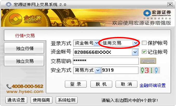 第三步:登陆账户点击下拉菜单,选择“信用交易”,不要选择营业部名称。