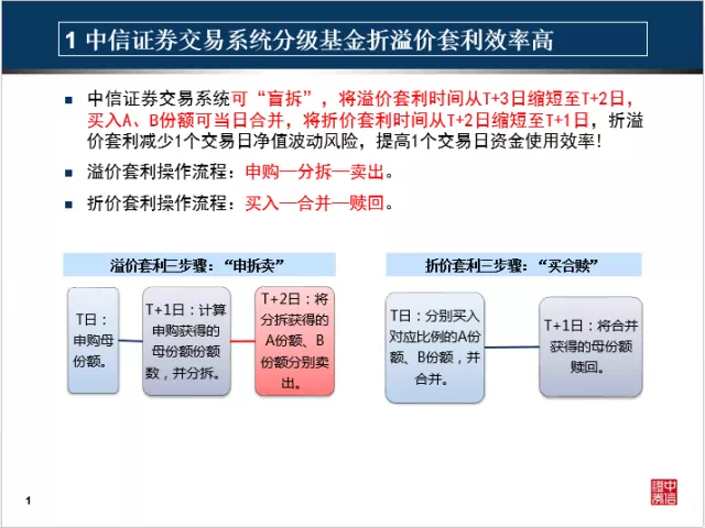 中信证券交易软系分级基金折溢价套利效率高!溢价套利只需T+2日,折价套利只需T+1日!欢迎到中信证券开户交易!