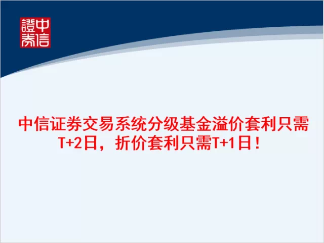 重点推荐|中信证券交易系统 分级基金溢价套利 只需T+2日,折价套利只需T+1日!