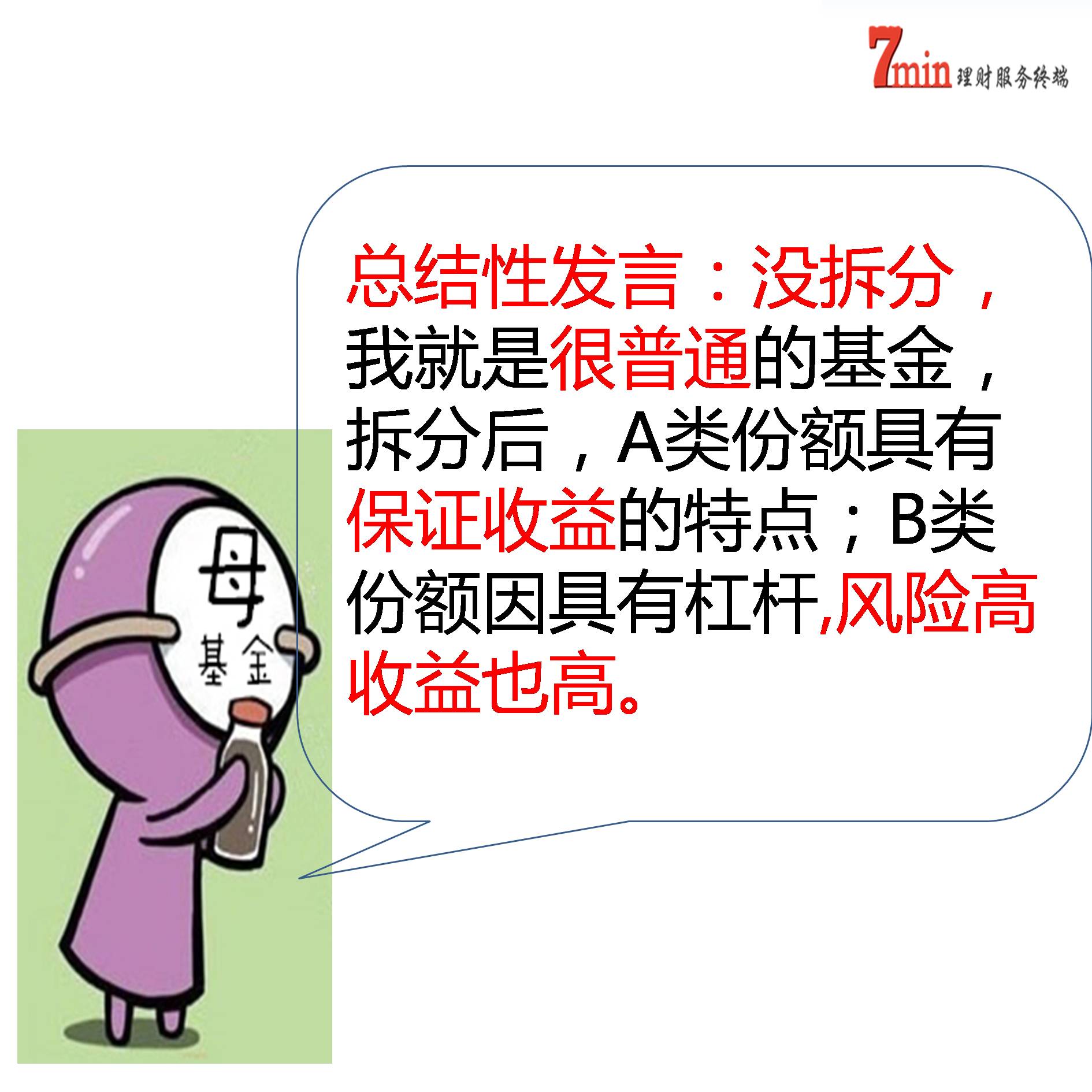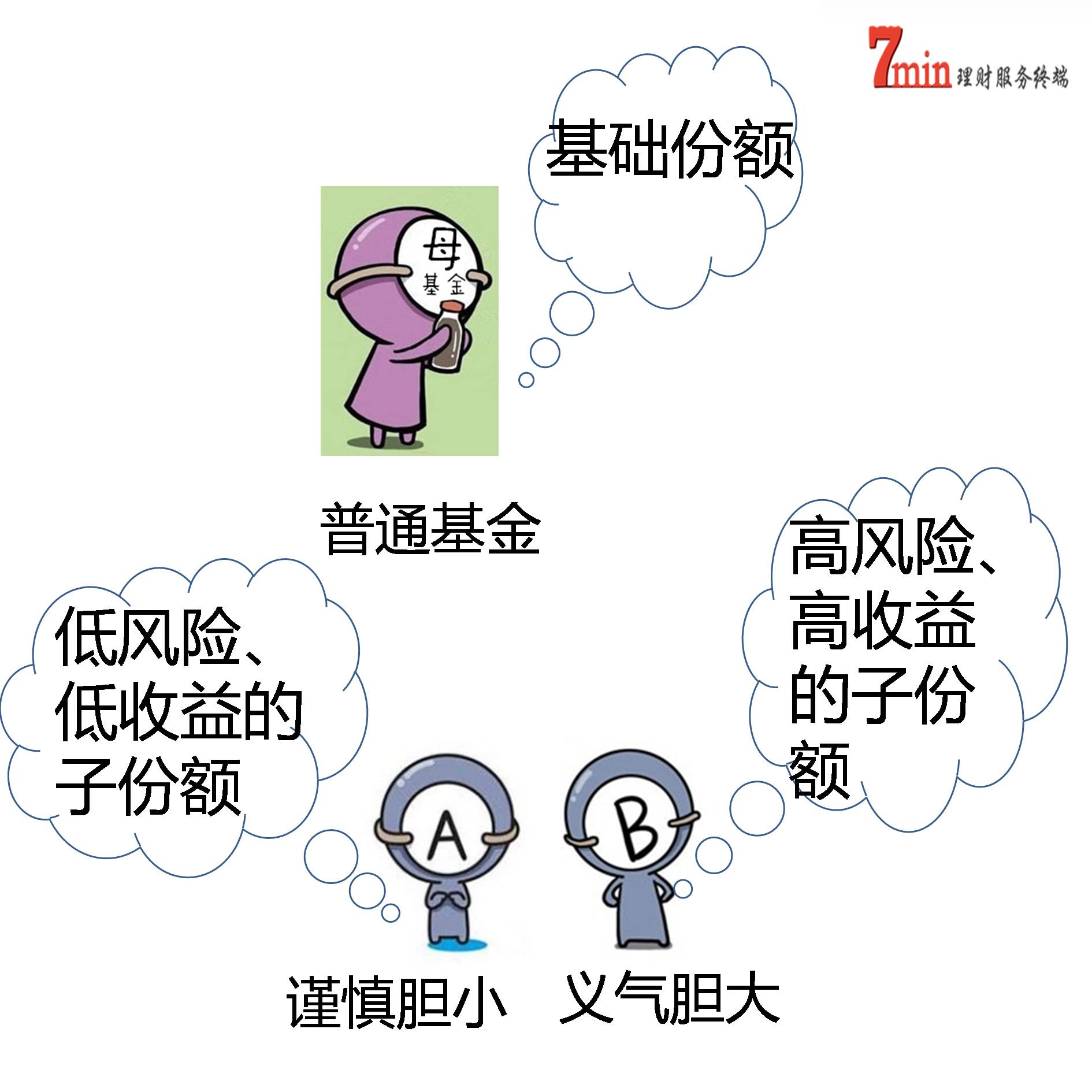 分级基金的A类份额(基金A)相当于债券基金,将全部的资金借给“基金B”(杠杆基金)去炒股。“基金B”必须保证“基金A”的本金安全,而且每年一定要付给“基金A”大约6%的利息。“基金B”在发行时就约定持