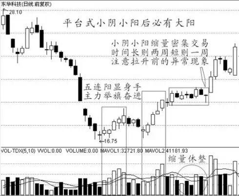 图解:条件一一般前期涨幅达20%以上;条件二前面经过两浪上升,在两浪洗盘时选股;条件三经过三浪上涨后小阳小阴平台盘整15天以上,后面再进入主升浪的可能。F9:火箭升空