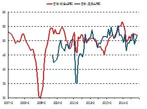 日本的制造业PMI仍维持2014年5月以来的反弹趋势,投资信心指数也触底反弹,产出缺口也反弹于2012年12月,经历2014年3-8月短期调整后,9月开始再次反弹,日本本轮库存周期仍未结束,按照其短周期运行规律,将于2015年年中附近见顶。