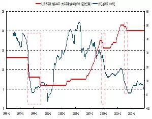 但另约束条件却是在放松的:外汇占款增速回落明显,2014年10月外汇占款增速仅为4.1%,已经低于上一次降准时的9.5%,已经处于历史较低水平;通缩风险加大,2015年而言,PPI通缩由于基数影响,仍难以转正,而CPI的翘尾也保持较低水平(翘尾影响最高不超过1%),2015年低通胀可能性较大,但能否触发降准条件仍存在未知数,但由于目前存准率在历史上属于偏高水平,外汇占款所带来的被动流动性释放在货币体系中的占比相对较低,2015年降准的概率依然较大。