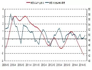 中国的宏观预警指数是观察和判断经济周期的重要指标。宏观预警指数领先或同步工业生产,预警指数大幅下跌后,工业生产必然大幅下滑;2014年11月预警指数73.3,为2000年以来新低,随时可能反弹。