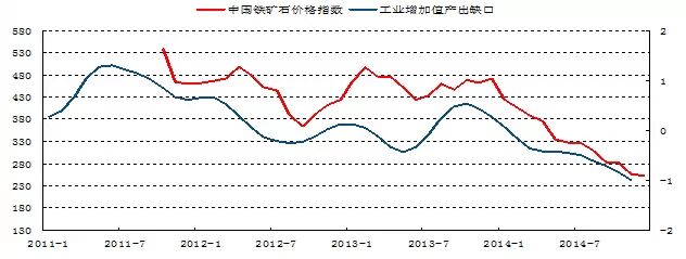 2011年10月以来,中国铁矿石价格指数下跌幅度高达53%,作为全球主要铁矿石消费大国,中国经济对全球铁矿石价格影响巨大。从铁矿石价格与中国经济周期关系看,二者又高度一致。本轮铁矿石价格的下跌,对应了中国经济周期调整以及中国经济增速的逐年下降。2014年12月以来,铁矿石期货反弹铁矿石期货价格反弹5.2%,为近一年多以来的月度反弹超过2%的月份。
