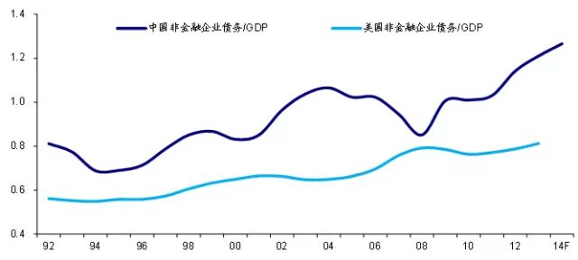 图11:我国企业债务占GDP比重远高于美国,08年后差距进一步拉大