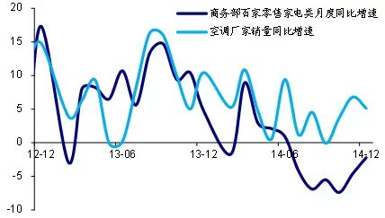 图6:14年家电零售持续负增仅空调维持正增长(%)