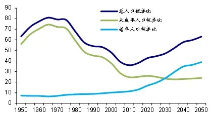 图7:中国人口抚养比预测(%)