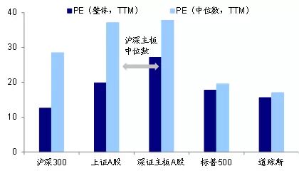 图1:我国主板指数估值高于美国