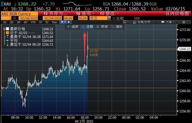 黄金急速拉升5美元: