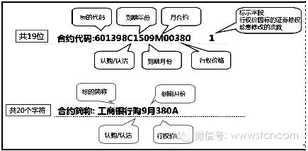 50ETF期权是以上证50ETF为标的开发的期权,假设以工商银行(601398)股票期权为例,2015年9月3.8元买入期权的代码如下:股票代码是6个数字,期权代码含有标的代码、到期年份月份和行权的价格。