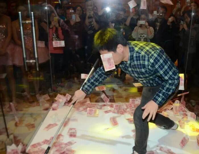 上海某个公司公司直接让每个员工进入玻璃大棚里抓钱。