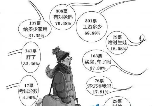 调查称7成受访者过年最怕被问工资和对象