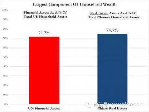 图9:家庭中最大资产比重:中国是房地产资产,美国是金融资产