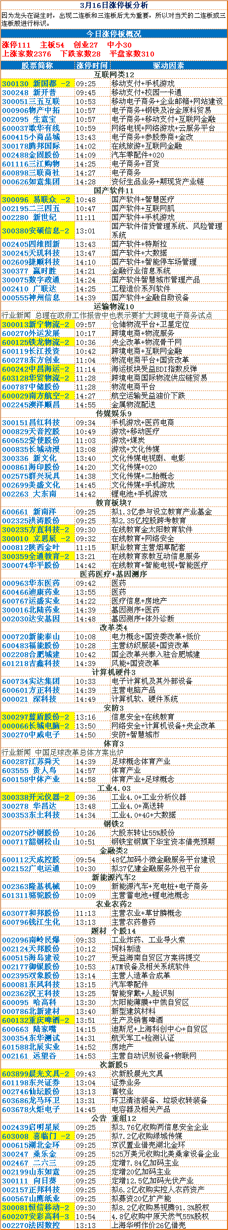 3月16日(精减版)涨停板分析+潜力股挖掘