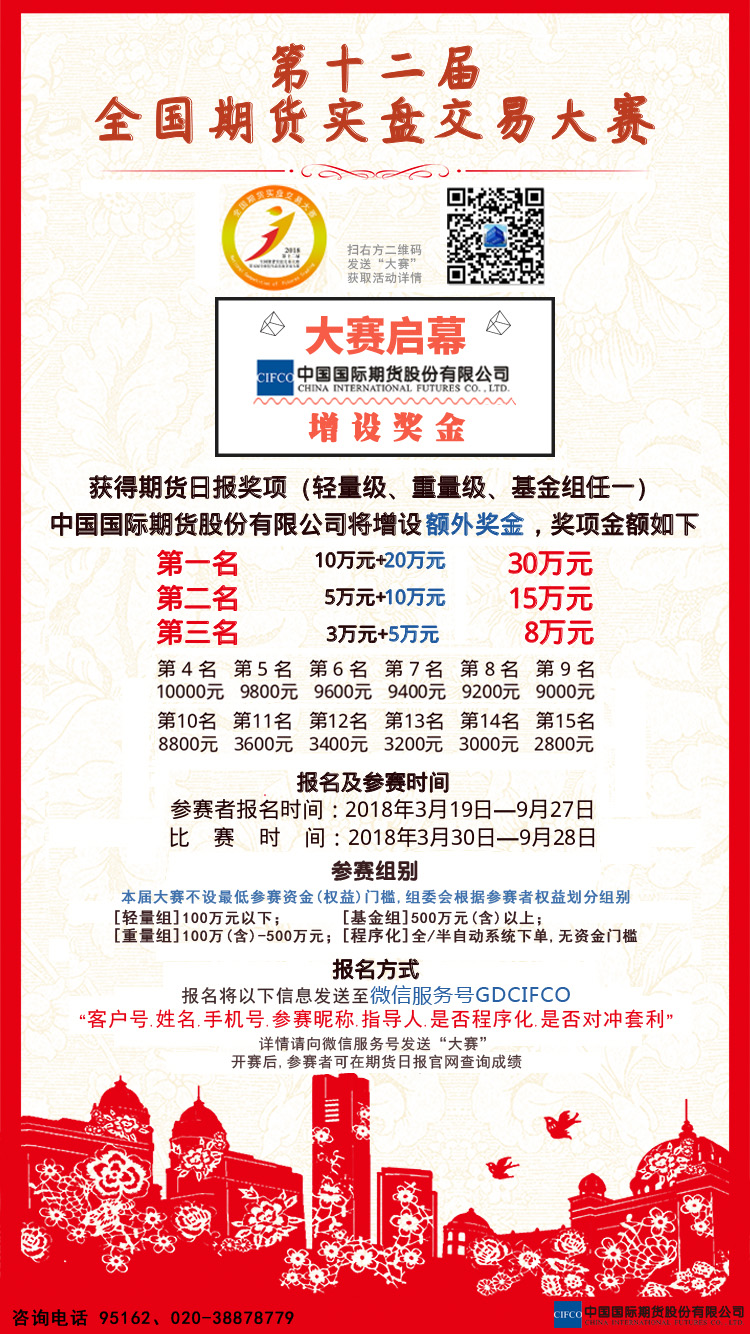4. 中国国际期货为全国期货实盘交易大赛指定交易商,中国国际期货(香港)为全球衍生品实盘交易大赛指定交易商。开户咨询请联系020-38878209。