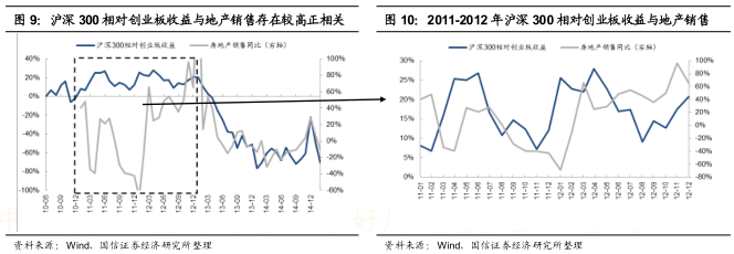 如果根据上述逻辑,即大小盘风格与房地产销售同比正相关,与 10 年期国债利率负相关的话,那么配置大盘股最好的时机是在地产销售上行而利率下行的阶段,对应的则是 11 年 2 季度、12 年上半年以及 14 年 2-4 季度。从历史上来看,相应的阶段中沪深 300 指数也都跑赢了创业板指,其中 2014 年的大盘蓝筹行情则体现的最为明显。