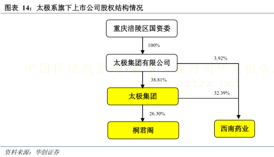 1)14 年 5 月 16 日,太极集团减持桐君阁股份 19.84%给重庆市涪陵国有资产投资经营集团有限公司(系重庆市涪陵区人民政府投资成立的产业类国有大型独资企业)。减持后太极集团持股比例从 49.84%降至 30%。