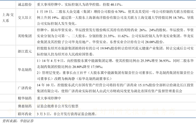 (三)下一个风口:关注清华系、上海交大系、英特集团、浙江震元、华北制药、广济药业、精华制药