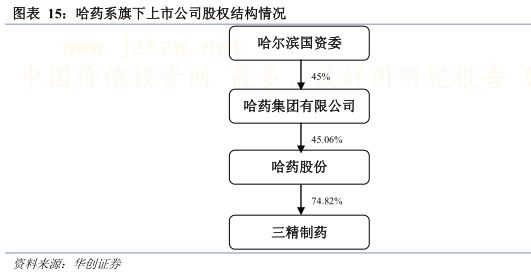 哈药集团是哈尔滨国资委控股的中外合资企业,拥有哈药总厂、哈药三精、哈药六厂、哈药中药公司、哈药生物、哈药疫苗等医药工业企业和哈药医药有限公司、哈药销售有限公司、哈药营销有限公司等商业流通企业。其中哈药股份的医药工业类资产主要分布在哈药总厂、哈药六厂以及资产置换前的三精制药等企业中。