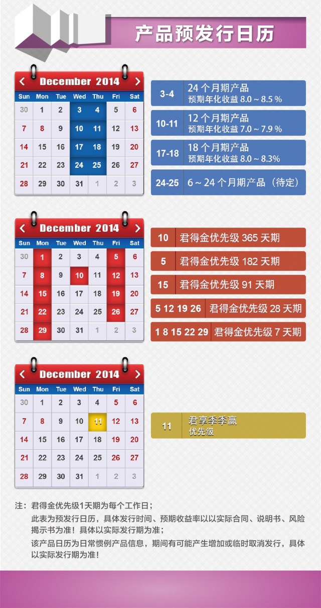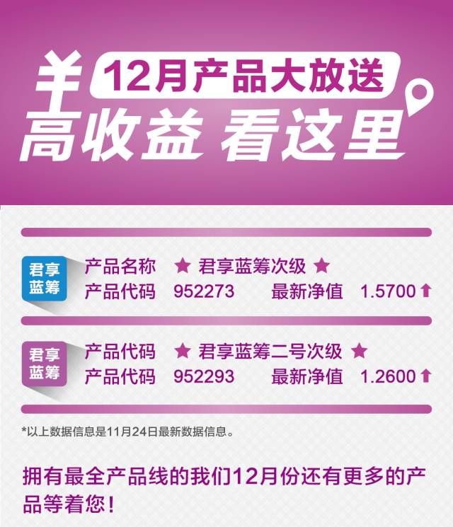 为满足客户投资需求,资产管理公司将于11月26日(周三)、11月27日(周四)发行君享通宝五十一号。此产品主要投资于我司确定的信托公司——中海信托设立的“中海汇信2014-34广西金投流动资金贷款集合资金信托计划”,该信托计划资金用于向广西金融投资集团有限公司发放12个月期信托贷款。