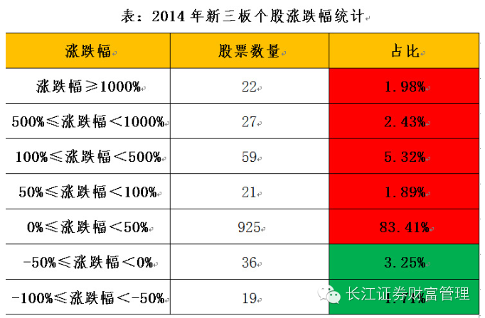 目前新三板交易股票1109只,2014年只有4.96%的股票出现下跌。