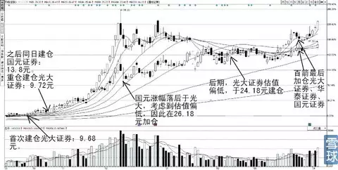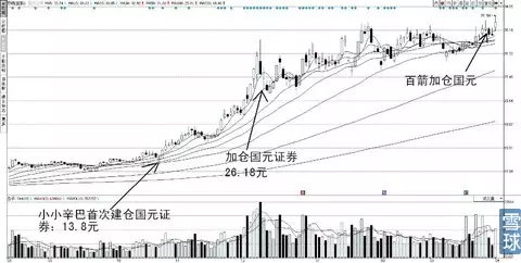 然后,券商股集体到顶回跌时,我再次加买的对象是国元证券。