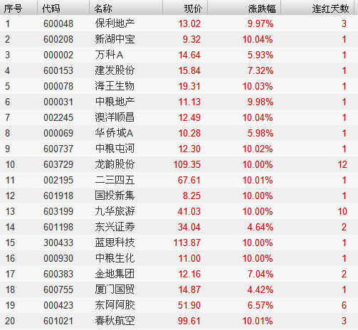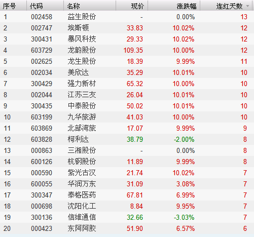 连红天数排名前20
