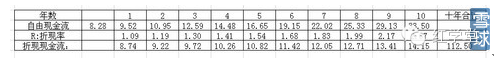 1988年自由现金流为8.28亿,每年增长15%,1998年为33.49亿。从1998年开始,表格如下: