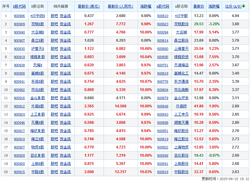 市场人士表示,可以沿着两条线挖掘B股,第一,A/B股值最大的,意思就是A股价格比B股价格越贵的,那么B股可能越低估;第二,纯B股属于无人区,值得挖掘。