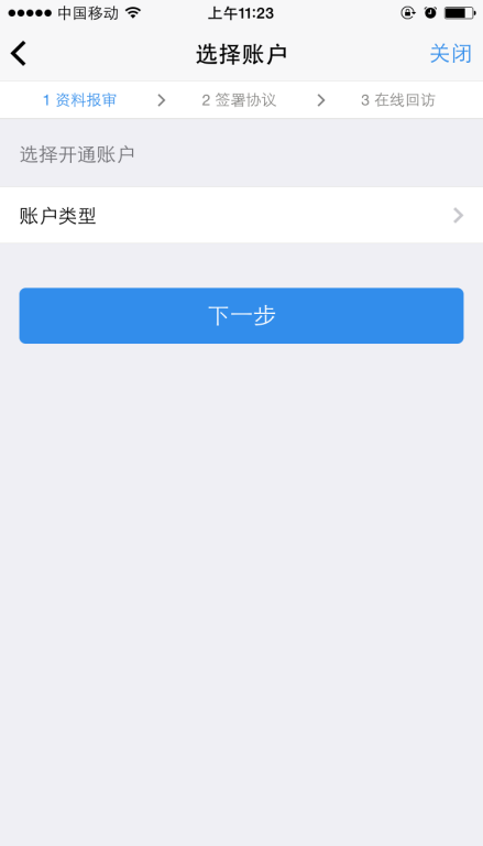 请客户仔细阅读开户相关协议,必须点击阅读后才能勾选“已阅读”选项,并点击“下一步”。