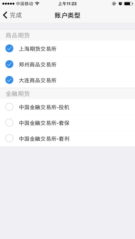 若是一次开户的客户,可选择的期货市场包括:上海期货交易所、郑州商品交易所、大连商品交易所。二次开户或之前开过的金融户的客户,可选择的期货市场包括:上海期货交易所、郑州商品交易所、大连商品交易所、中国金融交易所-投机、中国金融交易所-套保、中国金融交易所-套利。其中,前三个属于商品户,后三个属于金融户。