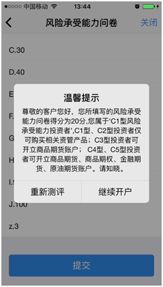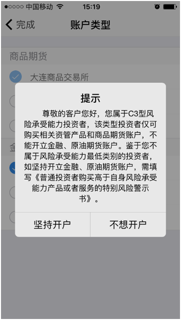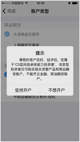 C3等级且选择金融或原油期货时第一次告知如图所示: