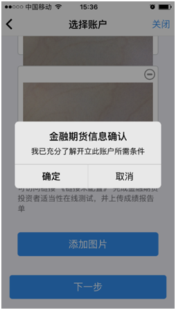 若点击“下一步”,弹出金融账户开立确认提示,如图所示: