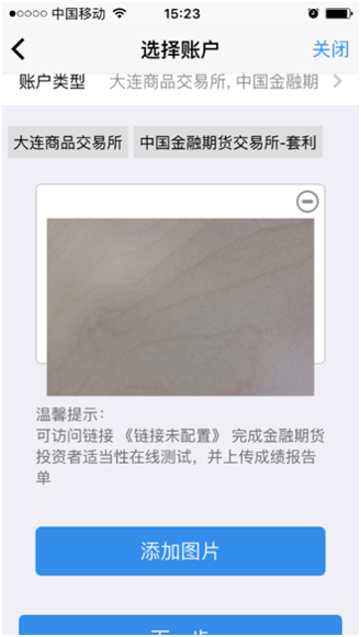 注意:客户初次开户时,不要勾选“中金所-投机”、“中金所-套保”、“中金所-套利”选项(二次开户除外),否则手机开户无法一次通过,需要退回修改;客户可以在商品期货开户成功后,可单独申请金融期货交易编码,单独 申请中金所编码时,只能选择“中金所-投机”。
