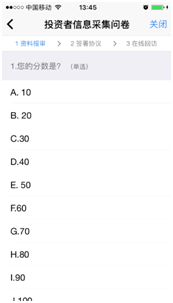 如果选择普通投资者,点击“下一步”进入到风险承受能力问卷页面,选择专业投资者,点击“下一步”进入到专业投资者信息采集问卷页面。