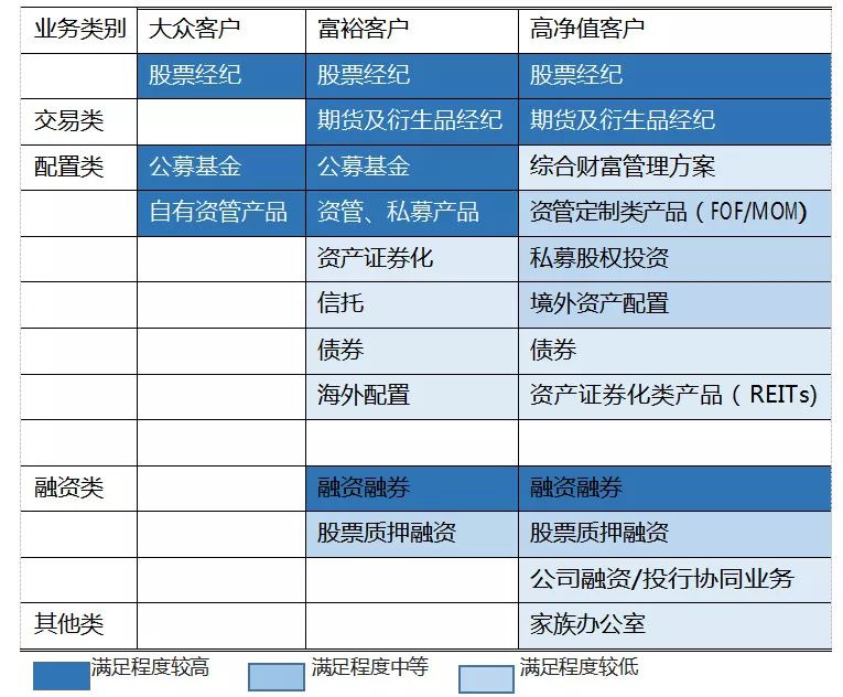 总体来看,当前券商财富管理业务仍然以交易为主,是辅之以融资融券业务以及产品代销业务的“假性”财富管理业务,同时这种模式下的财富管理业务具有低端化、同质化的问题,更为重要的是,对高净值客户的服务手段与产品远不能满足客户的个性化需求,券商具有优势的优势类产品也尚未充分使用并发挥服务高净值客户的作用。