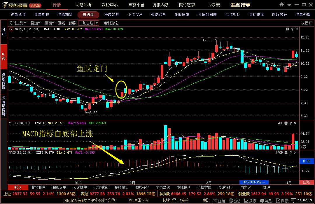 (5)股价突破各条均线当日,MACD指标出现拐头向上形态。