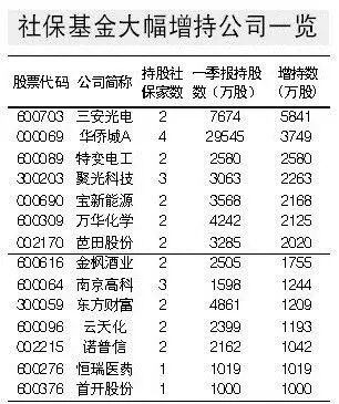 社保基金一季度调仓曝光 12股被大幅增持(附股)