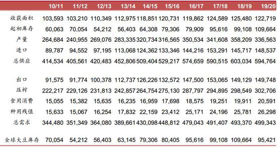 据USDA11月报告显示,预期19/20年度全球大豆产量同比减了2165万吨,而需求虽增幅放缓,但仍维持正增长,年度库存结转减少1400万吨,过去八年来首次去库存,全球大豆供需边际在改善。